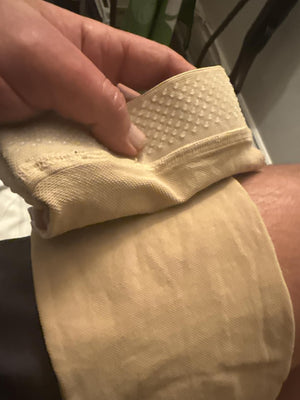 Banda lată cu silicon pentru a menține ciorapii fixați ferm pe coapsă, prevenind alunecarea.